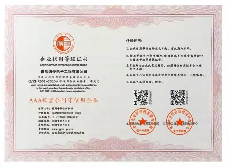 2、AAA級(jí)重合同守信用企業(yè)