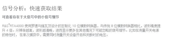 R&S®RTA4000 信號完整性和超大深存儲,將“十”力鉅獻提高到高水平。羅德與施瓦茨專門設計的10 位 ADC 具備低噪聲性能和高存儲深度,在遇到意外測量挑戰(zhàn)時可以生成高保真波形,確保可以快速準確地進行測量。
