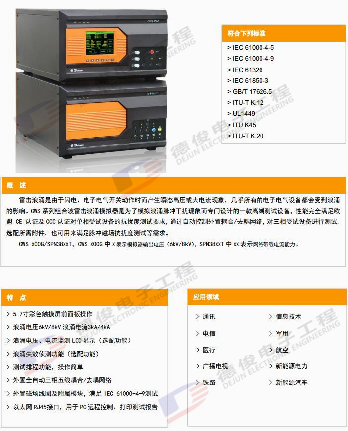組合波雷擊浪涌模擬器CWS X00G/SPN 38XXT