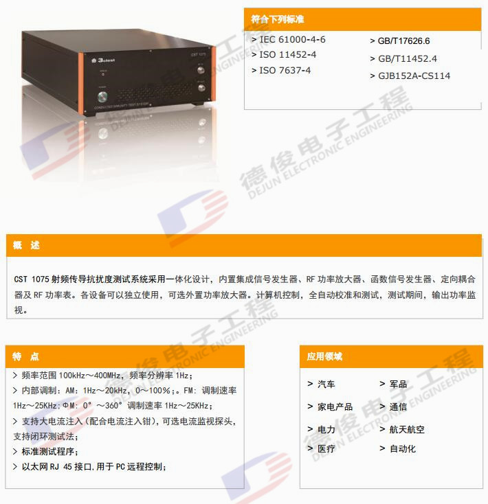 射頻傳導(dǎo)抗擾度測(cè)試系統(tǒng) CST 1075