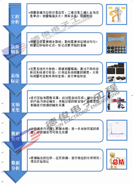 XTDIC數(shù)字散斑三維全場應(yīng)變測量分析系統(tǒng)的測量流程主要包含工程分析、散斑制備、系統(tǒng)標(biāo)定、實(shí)驗(yàn)采集、數(shù)據(jù)處理、數(shù)據(jù)分析六個(gè)大步驟,每個(gè)步驟都有一些需要注意的問題?珊饬康臏y量注意點(diǎn),可重復(fù)的操作步驟,是系統(tǒng)測量精度的一大保證。