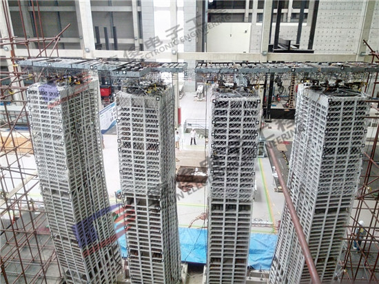 建筑模型結(jié)構(gòu)平面尺寸為9.84m×3.2m,高度超10m,由四座塔樓組成,分布在兩個(gè)剛性底座上,上部設(shè)置連橋,進(jìn)行超高層建筑模擬地震振動(dòng)臺(tái)實(shí)驗(yàn)研究,研究不同水準(zhǔn)作用下結(jié)構(gòu)的動(dòng)力熱性和動(dòng)力響性。